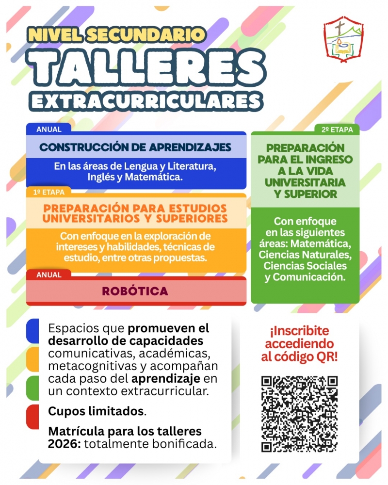 Con mucha alegrÃa queremos compartir con ustedes la propuesta de talleres extraprogramáticos que ofreceremos en nuestra escuela a partir del ciclo lectivo 2026.