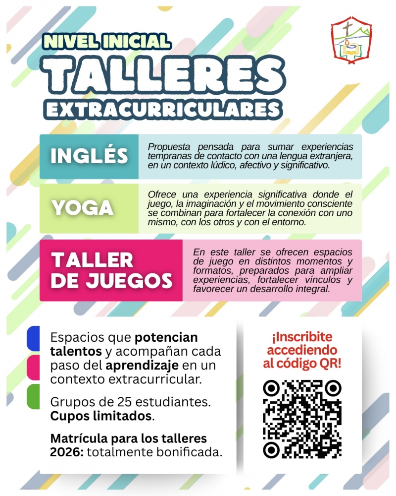 Con mucha alegrÃa queremos compartir con ustedes la propuesta de talleres extraprogramáticos que ofreceremos en nuestra escuela a partir del ciclo lectivo 2026.
